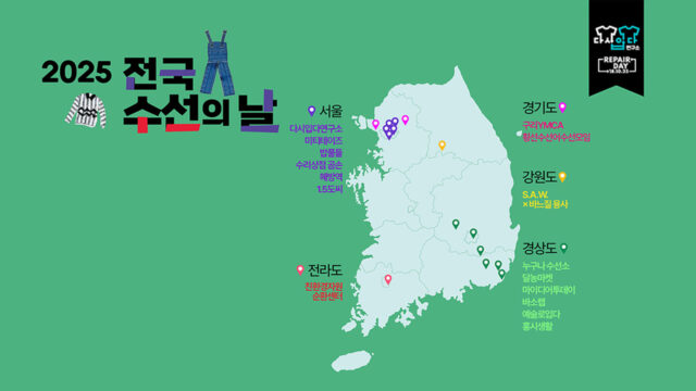다시입다연구소, 서울·부산·광주 등 15곳서 행사 개최 옷을 고쳐 입는 문화를 확산시키기 위한 ‘2025 전국 수선의 날’ 행사가 오는 18일 열린다. 사단법인 다시입다연구소는 이날 서울·부산·광주·원주·대구 등 전국 15곳에서 동시에 행사를 진행한다고 1일 밝혔다. 이번 행사는 글로벌 아웃도어 브랜드 파타고니아가 후원한다. ‘전국 수선의 날’은 매년 10월 셋째 주 토요일로 지정된 ‘국제 수선·수리의