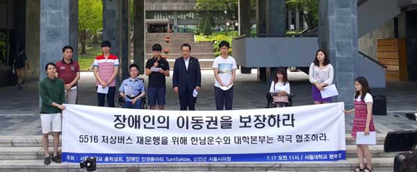 지하철 서울대입구역에서 서울대 본부까지는 2.58㎞로, 도보로 40분이 걸리는 언덕길이다. 저상버스가 사라지자 휠체어를 타는 학생들이 지하철역까지 나갈 수 있는 유일한 수단은 콜택시밖에 없었다. 하지만 서울 장애인 콜택시는 474대, 평균 대기 시간은 약 30분이다. 이용객은 많고 콜택시 수는 적어, 눈이나 비가 오는 날이면 꼼짝없이 서너 시간을 기다려야 한다.