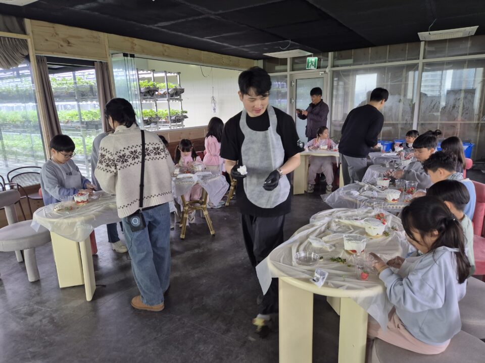 이 회사의 세종 스마트팜은 5년간 비어 있던 상가 3층(약 200평)을 개조해 만든 공간이다. 농장과 사무실이 함께 있는 이곳은 도심 공실을 재활용한 대표적 사례로 꼽힌다. 이곳에서는 제빵사가 직접 재배한 딸기로 케이크를 만드는 체험 프로그램도 운영된다.