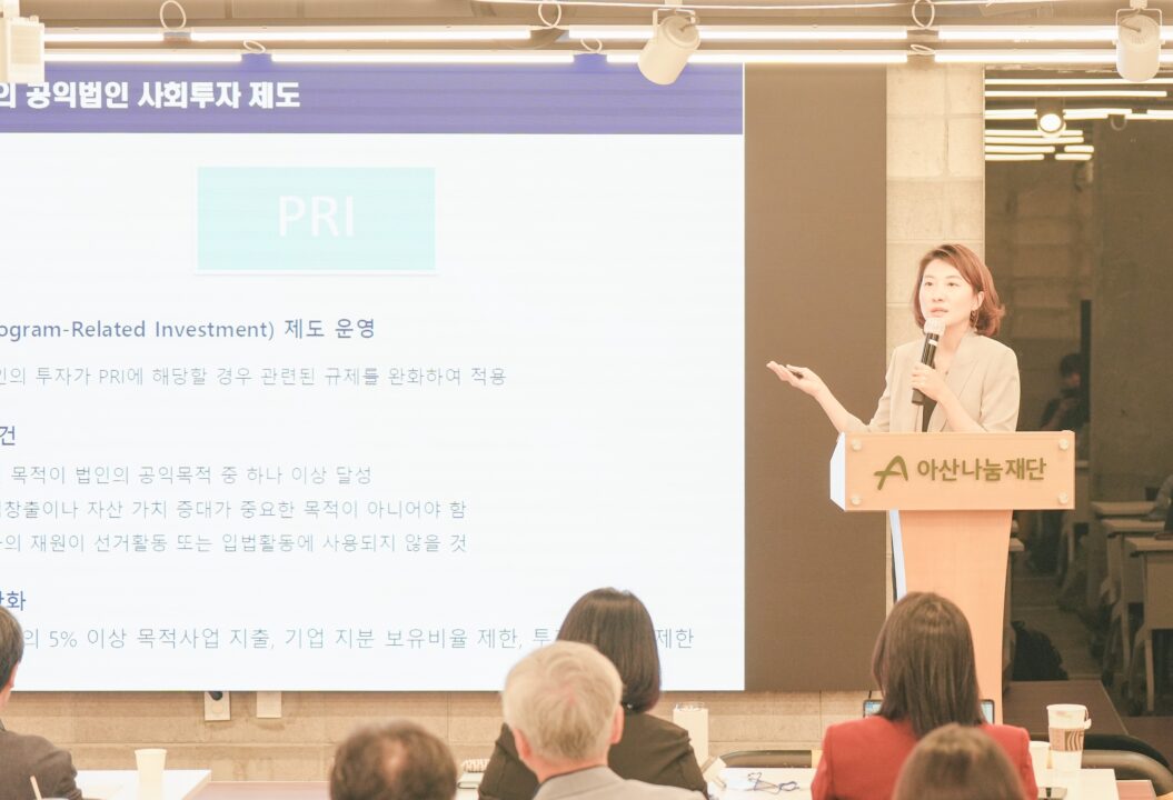 김 변호사는 “미국의 프로그램 연계투자(PRI)나 미션 연계투자(MRI)처럼 공익 목적 투자를 제도적으로 인정하는 법적 장치가 필요하다”고 했다. 미국의 공익재단은 전체 자산의 일정 비율을 사회적 목적에 투자할 수 있으며, 이를 ‘공익사업’으로 간주해 세제 혜택을 유지한다.