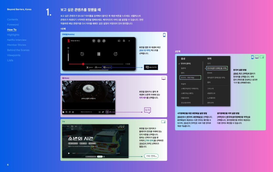 넷플릭스 배리어프리 사례집 중 기능 소개 페이지. /넷플릭스