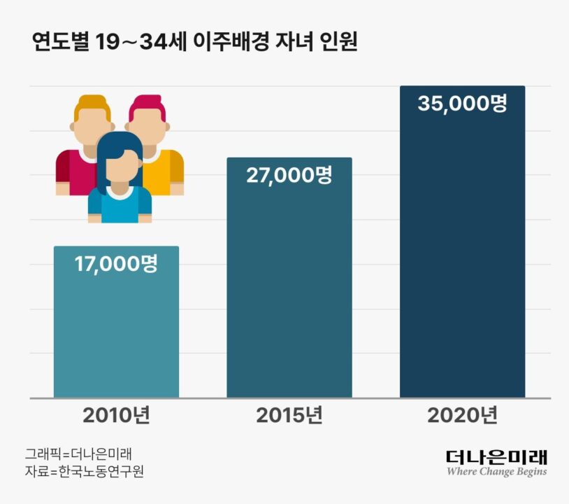 일반적으로 이주배경청년은 ‘본인 혹은 부모 세대를 통해 국경을 넘는 국제 이주를 경험한 청년’으로 규정한다. 한국노동연구원은 인구총조사를 토대로 이주배경청년 규모를 2010년 1만7000명, 2015년 2만7000명, 2020년 3만5000명으로 추산한다. 매년 꾸준히 늘고 있지만, 이들의 성장을 뒷받침할 제도적 기반은 여전히 미비하다.