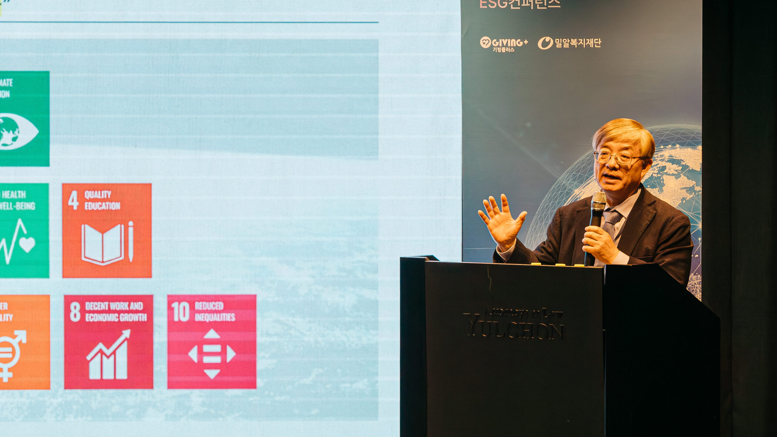 12일 열린 ‘2025 ESG 컨퍼런스’에서 유연철 유엔글로벌콤팩트 한국협회 사무총장은 AI를 ESG에 활용하는 사례들을 전달하며 ESG의 본질적 가치를 회복해야 한다고 강조했다. /기빙플러스