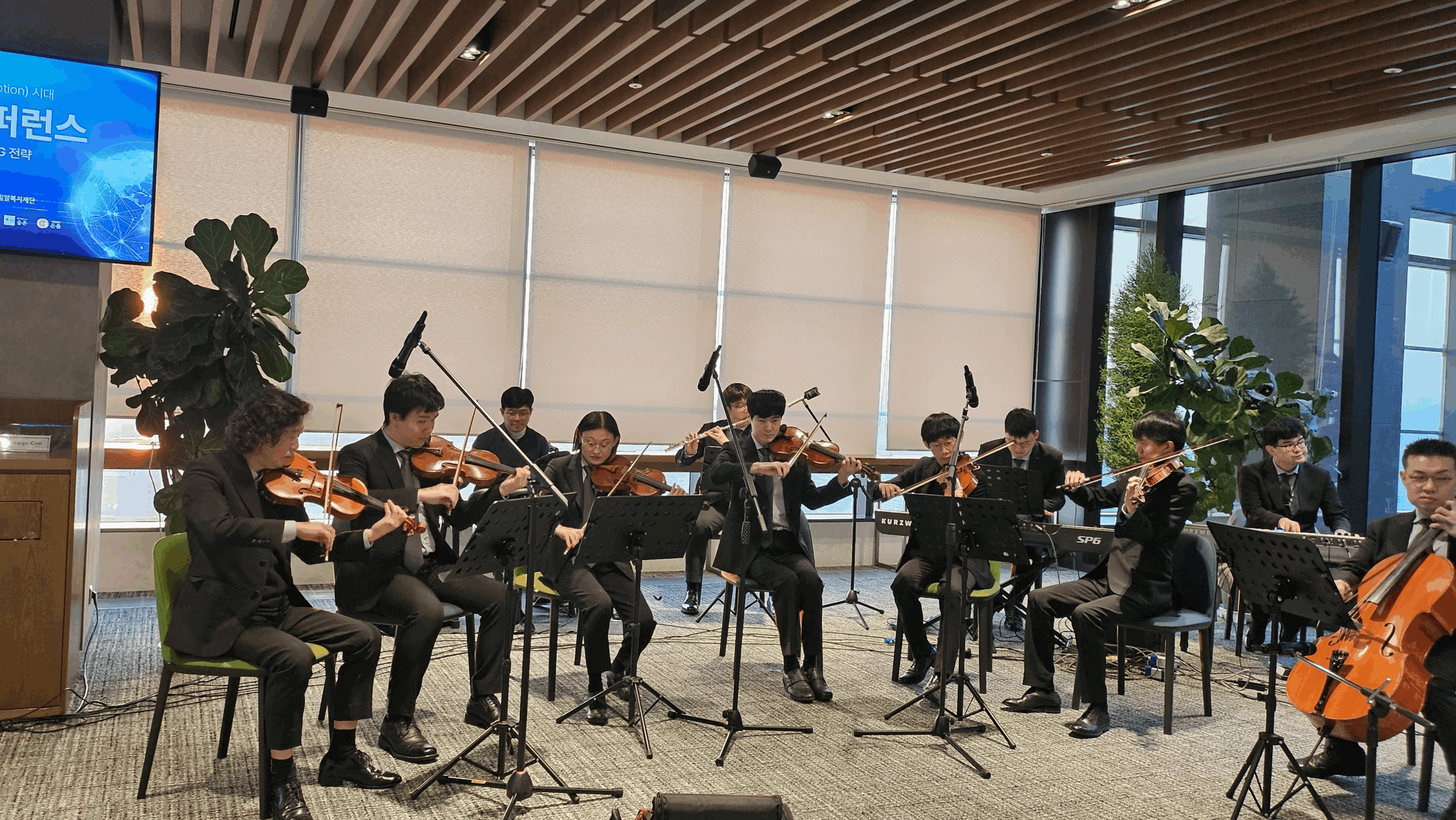 12일 기빙플러스와 밀알복지재단이 개최한 ‘2025 ESG 컨퍼런스’에서 발달장애인 연주자들로 구성된 브릿지온 앙상블이 연주를 하고 있다. 이번 컨퍼런스는 ‘기상이변(Climate Disruption) 시대, 1.5℃의 전환점: 2026 지속가능한 ESG 전략’을 주제로 진행됐다. /기빙플러스