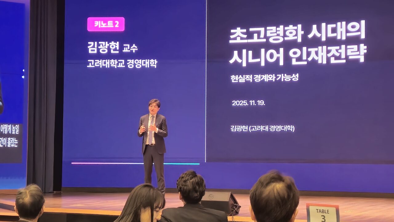 이어서 발표에 나선 김광현 고려대학교 경영대학 교수는 시니어의 경험자본에 대해 강조했다. 김 교수는 “시니어는 축적된 기술과 경험을 바탕으로 고난도 문제 해결에 강점을 갖고, 베이비붐·산업화 세대 특유의 책임감은 조직의 안정성을 높인다”고 분석했다.