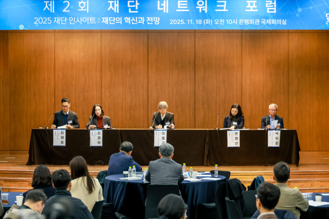 종합토론에서는 한국 재단이 앞으로 어떤 전략과 역할을 가져야 하는지가 핵심 의제로 다뤄졌다. 좌장은 이중교 연세대 법학전문대학원 교수가 맡았고 ▲김경하 더나은미래 편집국장 ▲최재호 현대차 정몽구재단 사무총장 ▲변영선 회계사 ▲박두준 센터장이 패널로 참여했다.