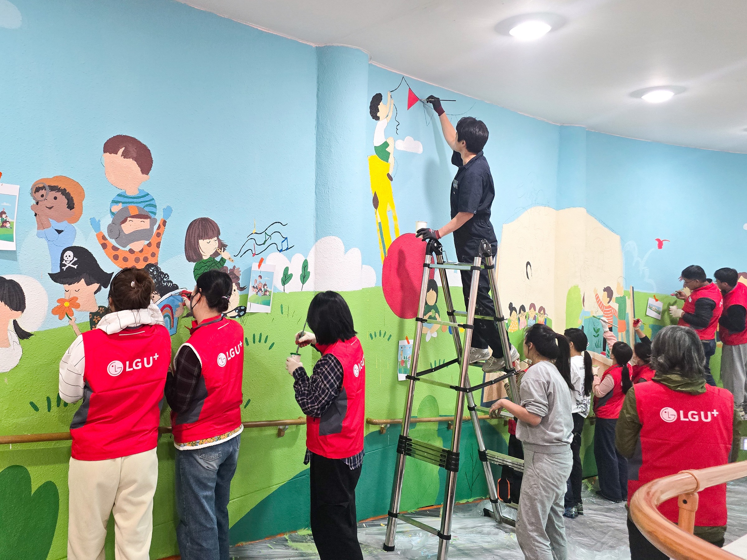 희망도서관 개관과 함께 LG유플러스는 시각장애 학생들을 위한 벽화 그리기 봉사활동도 진행했다. 지난 25일 충주성모학교를 찾은 임직원 20여 명은 학교 담장에 약 46.15㎡ 크기의 벽화를 함께 그렸다. 밝은 톤으로 그려진 벽화는 저시력 학생들이 따뜻하고 안정적인 분위기에서 학습할 수 있도록 돕는 역할을 할 것으로 기대된다.