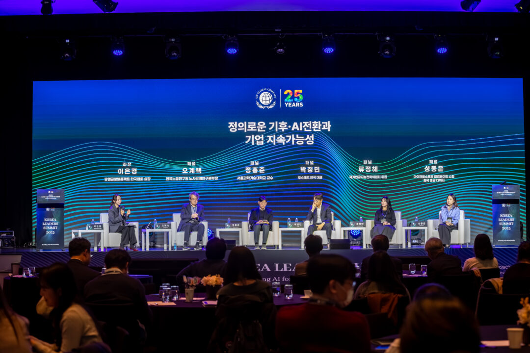 이 논의는 글로벌 담론의 장에서도 확산되고 있다. UNGC 한국협회는 지난 11월 20일 ‘코리아 리더스 서밋(Korea Leaders Summit 2025)’을 개최해 기술·정의·지속가능성의 새로운 방향을 논의했다. 600여 명의 국제기구·정부·기업·학계·시민사회 인사가 참석해 AI 거버넌스, 정의로운 전환(Just Transition) 등을 다뤘다.