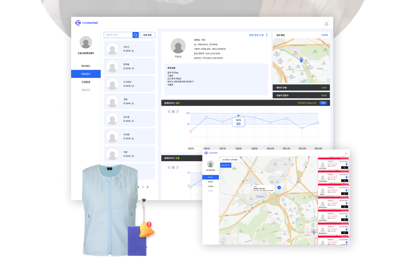 허기 개발 과정에서 축적된 생체 신호 데이터가 눈에 들어왔다. 돌봄드림은 이 기술이 발달장애인뿐 아니라 시니어에게도 도움이 될 수 있다고 판단했다. 그렇게 공기 주입식 조끼에 심탄도 센서를 결합한 시니어 건강 관리 솔루션 ‘클로멘탈’이 나왔다. 그러나 적용 대상이 바뀌자 내부의 질문도 달라졌다. 발달장애 영역의 문제의식으로 모인 팀원들에게, 시니어 돌봄으로의 확장은 무엇을 의미하는지 설명도 필요해졌다.