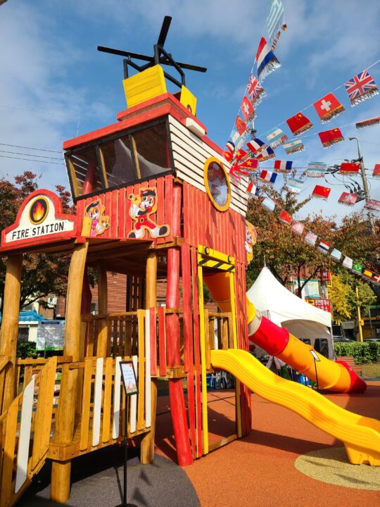 이곳은 롯데지주의 손길을 거쳐 경찰서와 소방서 콘셉트를 입은 새로운 공간으로 재탄생했다. 바닥은 푹신한 탄성포장제로 교체됐고, 미끄럼틀과 시소 등 놀이시설은 아이들의 안전을 최우선으로 전면 개선됐다.