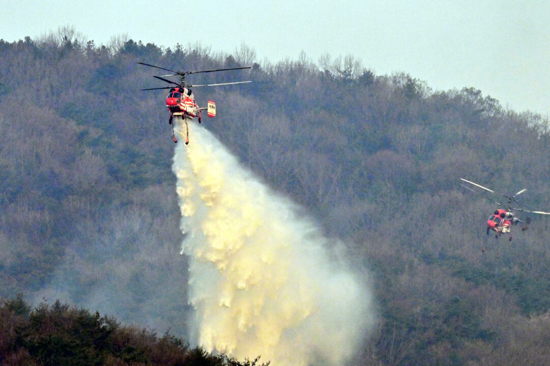 지난해 4월 경남 하동군 옥종면에서 산불진화헬기가 진화작업을 펼치고 있다. /뉴시스