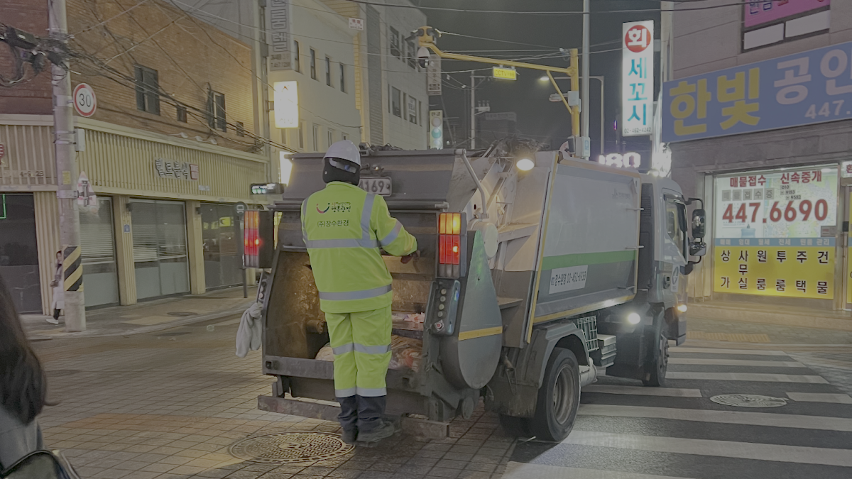 이어 “낮에는 차량 통행량이 많고 보행자와 오토바이까지 겹쳐 작업자가 노출되는 위험 요소가 훨씬 늘어난다”며 “여기에 소음 민원까지 더해지면 작업 동선이 계속 밀리고 쫓기는 구조가 된다”고 설명했다. 그는 “이런 환경에서는 주간 수거가 오히려 또 다른 안전 부담으로 작용할 수 있다”고 덧붙였다.