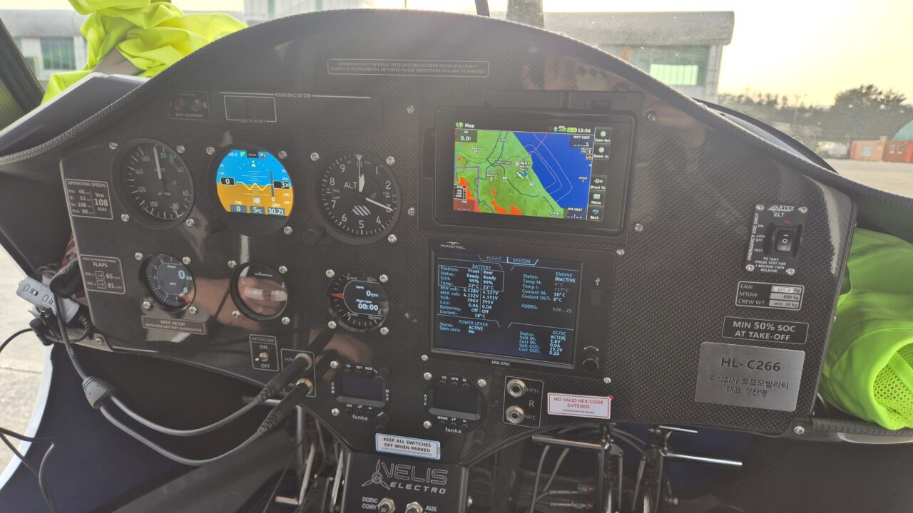 이날 조종간을 잡은 10년 차 베테랑 조종사 김해민 씨도 소음 차이를 강조했다. 그는 “내연기관 항공기는 시동을 걸면 소음이 커 노이즈 캔슬링 헤드셋을 쓰고 마이크로 대화해야 한다”며 “반면 이 비행기는 헤드셋 없이도 옆 사람과 일상적인 대화가 가능할 정도”라고 했다.