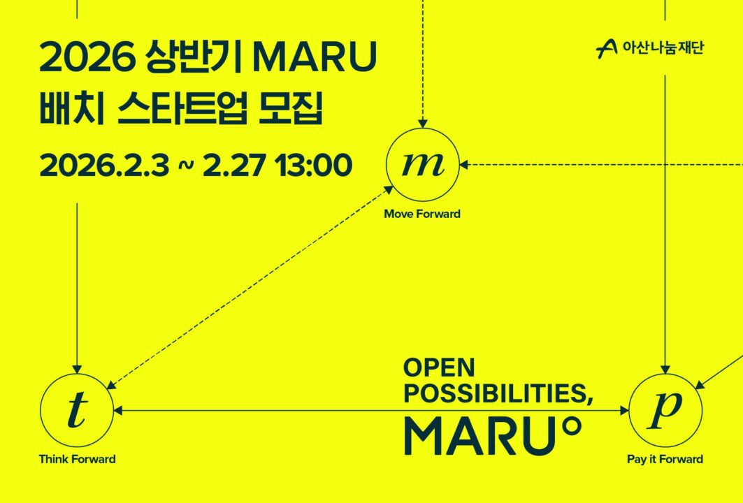 아산나눔재단은 기업가정신 플랫폼 ‘마루(MARU)’의 2026년 상반기 배치 프로그램에 참여할 스타트업을 이달 27일까지 모집한다.