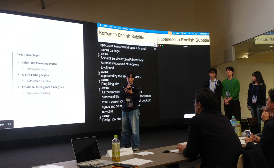 로컬 트랙에서는 ‘Gachi(같이·가치)’ 팀이 금상을 받았다. 이들은 은퇴 후 사회적 필요성을 잃고 우울감에 빠진 노인을 위한 AI 자서전 제작 서비스 ‘가치(Gachi)’를 제안했다. 발표자 박규원 씨는 “한국과 일본의 은퇴자들은 직업뿐 아니라 사회적 필요성을 잃고 있다”며 “기존 돌봄 서비스가 신체적 케어에만 집중했다면, 우리는 그들이 느끼는 공허함과 ‘의미의 부재’에 주목했다”고 설명했다.