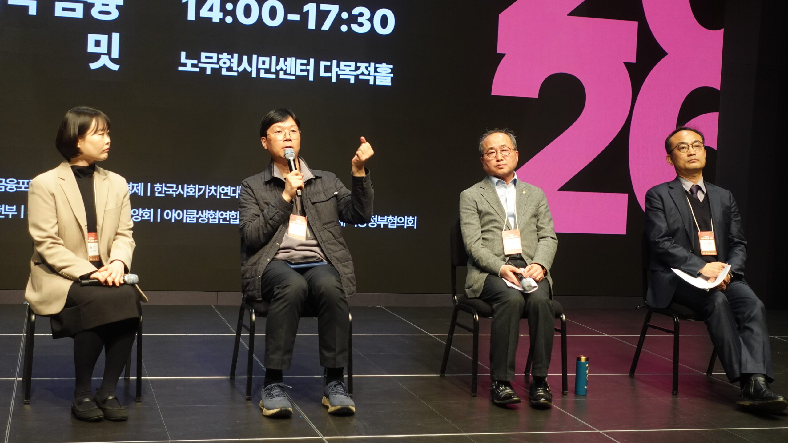 최현수 안산시민햇빛발전협동조합 이사는 2030년까지 안산 시민의 15%를 조직화하고 100MW 규모의 재생에너지 확대를 추진하겠다는 비전을 제시했다. 이현배 주민신협 이사장은 가치기반 금융의 글로벌 네트워크인 GABV 가입 사례를 소개하며, 국제적 기준과 학습 네트워크를 바탕으로 한국형 가치기반 금융 모델 확산을 모색하고 있다고 밝혔다.