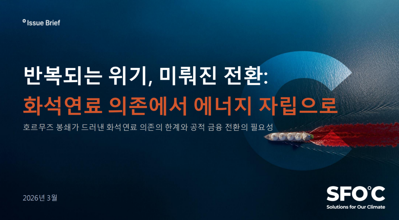 공적 금융의 투자 흐름이 화석연료 중심으로 쏠려 있다는 점도 문제로 언급됐다. 지난 11년 동안 화석연료 관련 인프라에 투입된 공적 금융은 141조 원으로, 재생에너지 지원 규모(11조 원)의 약 13배에 달한다. 보고서는 이러한 투자 흐름이 LNG 의존을 강화하고 외부 리스크가 국내 산업과 소비자 비용으로 전가되는 결과로 이어지고 있다고 분석했다.