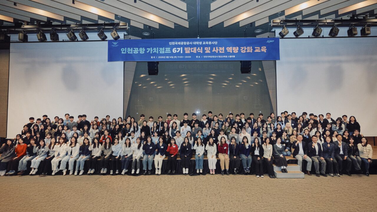 청소년은 학습과 진로 탐색의 기회를 얻고, 대학생은 장학금을 받으며 교육봉사 경험을 쌓는다. 여기에 기업 임직원이 사회인 멘토로 참여해 커리어와 삶의 경험을 나눈다. 청소년과 대학생, 직장인이 서로 다른 위치에서 연결되는 이른바 ‘삼각 멘토링’ 구조다. 이는 인천국제공항공사와 사단법인 점프가 공동으로 운영하는 교육 멘토링 프로그램 ‘인천공항 가치점프’의 핵심 모델이다.