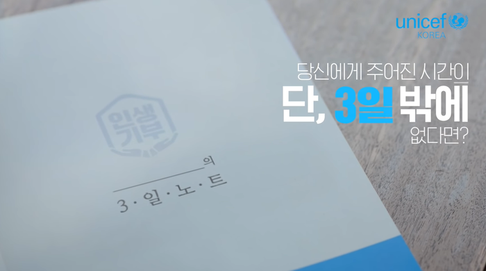 유니세프한국위원회는 2021년부터 ‘내 인생에 3일밖에 남지 않았다’는 상황을 가정해 삶의 마지막 순간 남기고 싶은 내용을 기록하는 ‘3일 노트’ 캠페인을 진행하고 있다. 삶의 마지막을 상상하며 남길 가치와 메시지를 돌아보게 하고, 사후 기부까지 생각을 확장하도록 유도하는 취지다.