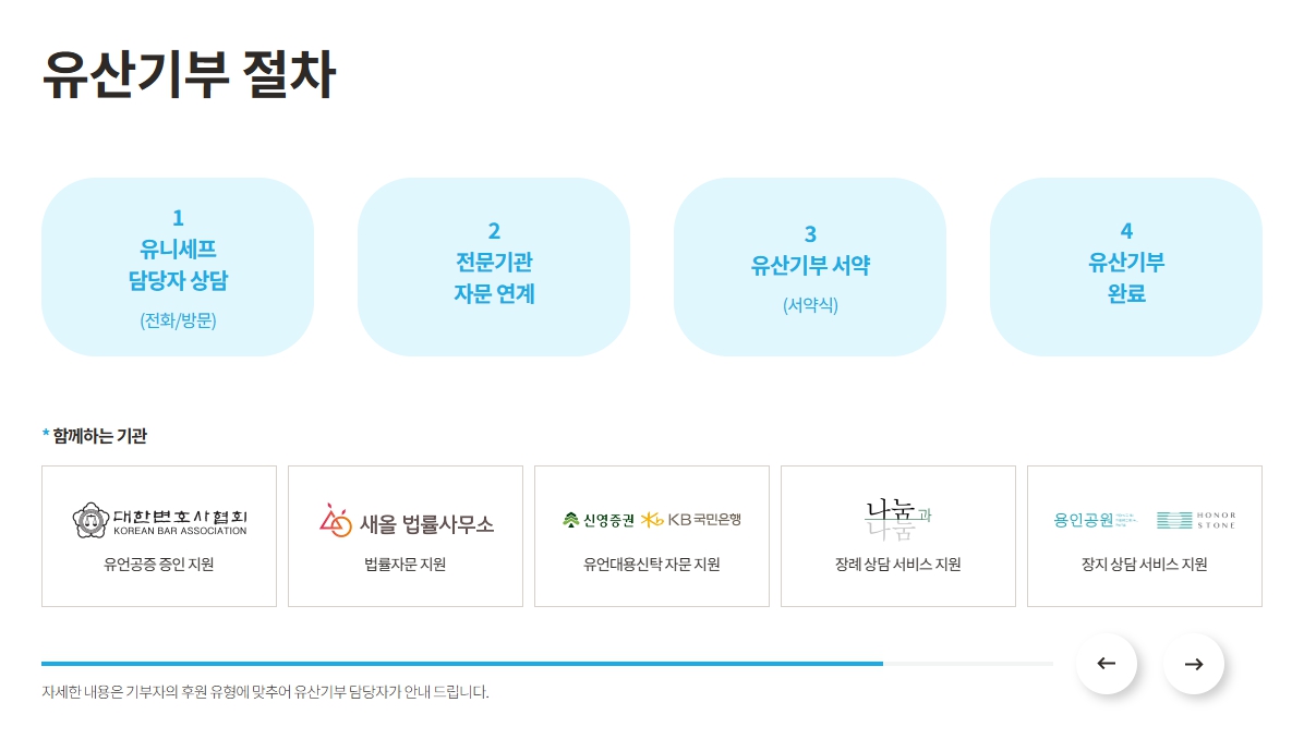 유니세프의 유산기부 안내 페이지. /유니세프 홈페이지 갈무리