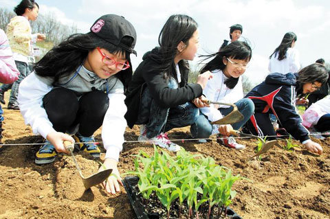 호텔 같은 숙소에서의 하룻밤을 마치고 아이들은 원주시 호저면의 매화마을에 도착했다. 마을 전체에 매화나무가 1만5000주가 있어서 매화마을이다. 이하섭 이장은 “평소 같으면 매화꽃이 가득 피는 시점에 맞춰 축제를 열지만 올해는 겨울이 너무 추워 축제를 못했다”고 했다. 이런 마을에 아이들이 찾아와 다시 활력을 일깨웠다. 밭에 옥수수 씨앗과 모종을 심고 매실 장아찌도 만들었다. 수건에 황토 염색을 해서 친구끼리 나눠 갖기도 했다.