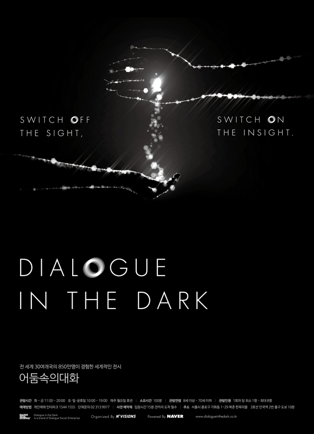 지난 28년 동안 유럽·아시아·미국 등 30개국 160여 도시에서 950만 명의 관람객이 경험한 전시 ‘어둠속의대화’의 캐치프레이즈다. 한국에서는 2009년 네이버의 투자를 받은 자회사형 장애인표준사업장인 ‘엔비전스’가 2010년부터 상설 전시를 이어나가고 있다. 엔비전스는 현재 시각장애인 25명과 비장애인 10명, 총 35명을 고용하고 있는 사회적기업이다.