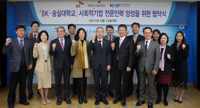 지난 13일, SK와 숭실대학교는 국내 최초로 사회복지 분야 사회적기업 전문 인력 양성 협약을 체결했다. 경영대학 중심이었던 사회적기업 전공이 사회복지 현장인 사회복지대학원에서도 도입될 수 있는 기틀을 마련한 것이다. 숭실대는 2017년 1학기부터 사회복지대학원 내에 사회적기업 전공 석사과정을 운영하고 있으며, 앞으로는 SK와 함께 수업 커리큘럼 개발 및 창업 인큐베이팅 등 장기적인 지원 방안을 협력하게 된다.