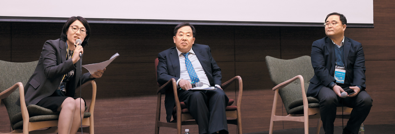 ‘2017 D3 임팩트 나이츠(D3 Impact Nights)’ 포럼 첫째날 오후에는 박란희 더나은미래 편집장(왼쪽)의 사회로 손주은 메가스터디 회장(윤민창의투자재단 이사장·가운데)과 김철환 카이트창업가재단 이사장의 성공과 투자 철학에 관한 대담이 진행됐다. ⓒ루트임팩트