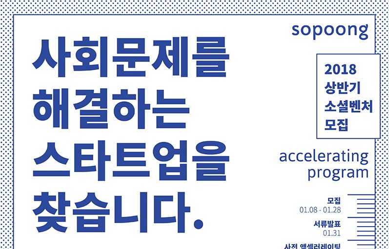 한편, 올해 sopoong는 상·하반기 정기투자와 수시투자, 중점투자를 통해 소셜 임팩트 확장에 나선다. sopoong는 1월 17일(수) 오후 7시 30분 성수동 카우앤독 2층 C50(성동구 왕십리로 2길 20)에서 상반기 모집 설명회를 통해 연간 투자 로드맵을 발표하고, 액셀러레이팅 프로그램에 관한 자세한 내용을 소개할 예정이다. 더 많은 내용은 sopoong 공식 웹사이트에서 확인할 수 있다. ☞2018년 상반기 소셜벤처 투자 프로그램 설명회 참석 신청하기