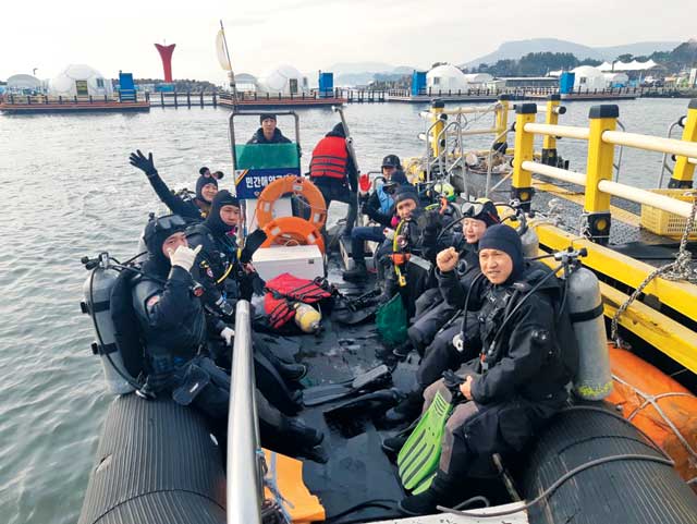 정부도 해양 쓰레기 수거를 환경문제 해결의 중요 과제로 보며 매년 예산을 늘려 왔지만, 해류를 따라 끝없이 밀려드는 쓰레기를 없애는 데는 한계가 있었다. 전국 곳곳에서 자발적으로 모여 수중 쓰레기를 치우는 다이버 봉사단의 활동이 중요한 이유다. 포스코 사내봉사단 ‘클린오션’은 지난 2009년부터 매주 포항·광양 등지에서 수중 정화 활동을 진행하고 있다. 국내에서 가장 활발하게 활동하는 다이버 봉사단 중 하나다. 지난 18일 기자가 이들과 함께 경상북도 포항 앞바다에 입수했다. 바닷속 상황을 살펴보고 쓰레기 수거 과정에도 참여했다.