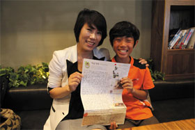 어머니 황춘금(39)씨의 목소리가 살짝 떨린다. 8년 전 경찰로 근무하던 연호군의 아버지는 사고를 당해 뇌사 상태에 빠졌다. 당시 연호의 나이 4세였다. 하지만 황씨는 집안의 어려움을 부끄러워하지 않고 가진 것을 나누는 삶을 살도록 연호군을 키웠다. 그 결과 요즘은 사랑의 리퀘스트 등 성금 모금 방송을 보면 어머니를 졸라 ARS 전화를 바로 걸 정도라고 한다. 여동생인 혜리(10)양도 나눔에 관심을 갖고 올해부터 편지 쓰기 행사에 참여했다. 가족끼리 작은 나눔 약속을 정하고 실천하는 ‘나눔 릴레이’도 진행한다. 네팔 친구들이 즐겁게 공부할 수 있도록 안 쓰는 학용품과 축구공을 모으기 시작한 것이다.