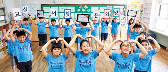 월드비전의 ‘교실에서 찾은 희망’ 캠페인. 서울 신목초등학교 학생들이 플래시몹을 선보이고 있다. /월드비전 제공