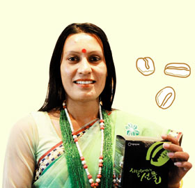 “제가 재배한 커피를 한국 분들이 직접 드시는 걸 보니 너무 신기해요.” 방송을 마친 먼두 타파씨의 양 볼은 붉게 물들어 있었다. 그녀는 “커피를 많이 판매한 것도 좋지만, 네팔 사람들의 삶에 커피가 어떤 의미를 가지는지 알릴 수 있어서 흡족하다”고 했다. 먼두 타파씨는 네팔 북부 산간 지역에 위치한 신두팔촉 지역 최초의 커피 농부이자, 네팔에서 마을 최초로 커피협동조합을 구성한 청년 여성이다.