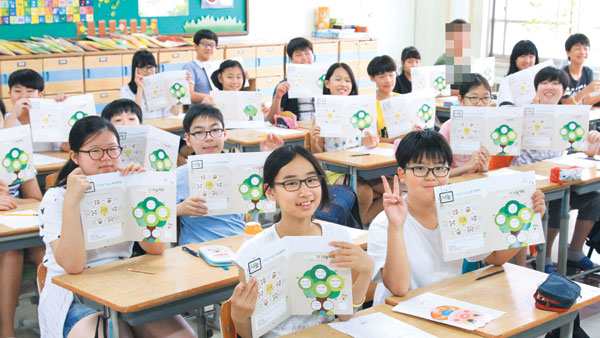 짧은 영상을 감상한 후 아이들은 직접 나눔 계획을 세웠다. ‘선생님에게 미소 나눠주기’ ‘친구에게 칭찬 나눠주기’ ‘엄마에게 응원 나눠주기’ 등 생애 첫 나눔 계획을 몇 번씩 썼다 지우면서도 아이들은 빈칸 채우기를 멈추지 않았다.