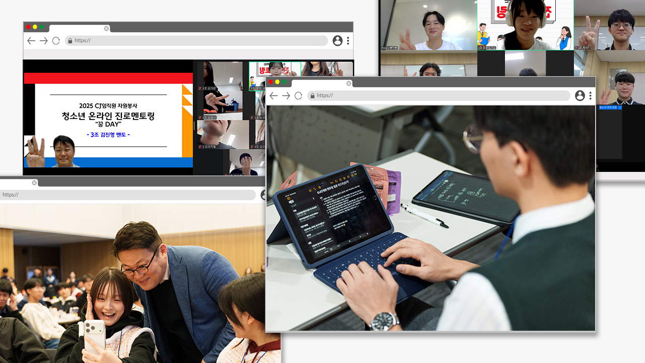 ‘CJ 진로사람책’ 임직원 자원봉사 임팩트 비대면 멘토링으로 도서·산간까지 넓힌 진로교육 기회 “멘토님 회사 복지 좋아요?” “지금 하는 일은 행복하세요?” “마케터가 되려면 고등학생 때 어떤 준비를 하면 도움이 될까요?” 중학교의 진로 수업 시간, 교실에서는 좀처럼 나오지 않던 질문들이 쏟아진다. 학생들이 마주한 상대는 교사가 아니라 화상회의 화면 속 CJ그룹 현직 임직원들이다. 학생들은 칠판 대신 휴대전화와 노트북을 켜고, 사전에 희망한 직무에 따라 소회의실로 나뉘어 현업 임직원과 소그룹으로 연결된다. 전 계열사 임직원은 물론 주요 계열사 대표급 경영리더도 멘토로 참여한다. 이는 올해로 5년 차를 맞은 청소년 진로 멘토링 프로그램 ‘CJ 진로사람책’의 현장. 한국자원봉사문화가 운영하는 ‘CJ 진로사람책’은 CJ그룹 현업 임직원이 ‘사람책’이 되어 자신의 경험과 조언을 청소년에게 직접 전하는 방식의 진로 멘토링이다. 2020년 온라인 파일럿으로 시작해 현재까지 임직원과 경영리더 757명이 멘토로 참여했고, 프로그램에 참여한 청소년은 6235명. 대학생 자원봉사자로 운영을 돕는 청년리더도 750명에 이른다. ◇ 현장과 멀어진 진로교육, ‘사람’을 만나 가까워지다 “대학생들은 직접 부딪히며 진로를 탐색할 기회가 있지만, 중·고등학생들은 학교 안에 머무르다 보니 직업 세계를 접할 기회가 거의 없습니다. 그래서 현업에서 실제로 겪는 어려움과 필요한 역량을 가능한 한 솔직하게 전하고 싶었습니다.” ‘진로사람책’에 봉사자로 11차례 참여한 조재형 CJ제일제당 식품연구소 박사의 말이다. 프로그램의 핵심은 기업 임직원이 자원봉사자로 참여해 현업의 경험을 청소년에게 직접 전하는 데 있다. 이는 2020년 자유학기제 전면 시행 이후 진로체험 수요는 늘었지만, 이를 뒷받침할 콘텐츠와 인프라는 제한적이었던 상황에서