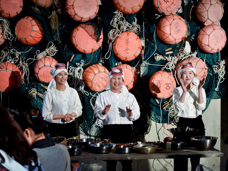 [청년이 지역을 살린다] ④제주 ‘해녀의부엌’ 올해 초 제주시 구좌읍 종달리 포구에 문을 연 레스토랑 ‘해녀의부엌’은 일종의 ‘극장식당’이다. 해녀들이 바다에서 캐낸 뿔소라, 전복, 톳 등으로 만든 해산물 요리를 맛보며 해녀의 삶을 담은 연극 공연을 보고 현직 해녀가 들려주는 해산물 이야기도 들을 수 있다. 별다른 홍보를 한 것도 아닌데 어느새 소셜미디어에서 ‘종달리맛집’ ‘제주파인다이닝’으로 소문이 났다. 해녀의부엌은 종달리 해녀 집안 출신 김하원(28) 대표와 그의 대학 동기 고유나(29) 이사가 이끌고 있다. 두 사람은 한국예술종합학교 연극원을 졸업한 공연예술가다. 김 대표는 “제주도에서 레스토랑을 열게 될 줄은 꿈에도 몰랐다”며 웃었다. 그는 “해녀들이 채취한 해산물이 주로 일본에 수출되는데, 점점 일본 시장에서 제값을 받지 못하게 되면서 해녀들의 소득이 20년 전보다도 더 줄어든 상황”이라며 “해녀들이 건져 올린 해산물의 가치와 맛을 우리나라 소비자에게 알릴 수 있는 방법을 고민하다 저희가 가장 잘할 수 있는 ‘공연’과 ‘다이닝’을 접목해보기로 했다”고 설명했다. 두 사람은 매회 공연에서 해녀 복장을 하고 무대에 올라 ‘젊었을 적 해녀’ 역할을 소화하고 있다. 해녀의부엌이 자리 잡은 공간은 원래 갓 잡은 해산물을 판매하는 수산물 위판장이었다. 수십년 전 기능을 잃고 창고로 전락한 위판장을 작은 무대가 딸린 어엿한 레스토랑으로 꾸미는 과정은 고난의 연속이었다. 고 이사는 “어민들이 안 쓰는 물건들을 이곳에 쌓아두고 있었기 때문에 새벽에 어선 나가는 시간에 맞춰 김 대표와 포구에 나가 어민 한 분 한 분 직접 인사드리며 공간을 내어달라고 부탁드렸다”면서 “포구에서 따뜻한 커피도 타 드리고, 틈날