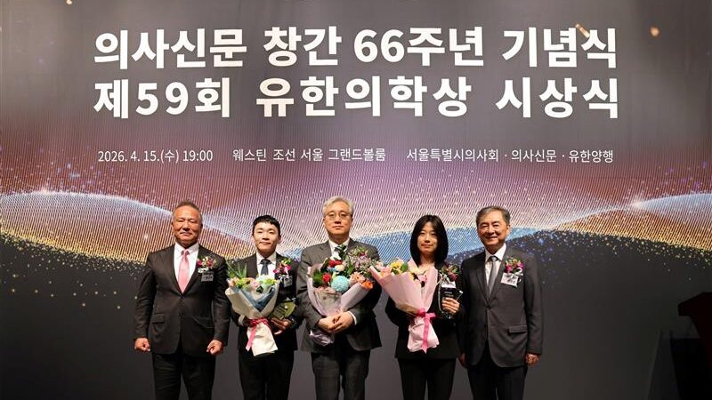 유한양행(대표이사 조욱제)과 서울특별시의사회(회장 황규석)는 지난 15일 저녁 소공동 웨스틴 조선호텔에서 제59회 유한의학상 시상식을 개최했다. 시상식에는 황규석 서울특별시의사회장, 유한양행 김열홍 사장 등이 참석했다. 제59회 유한의학상 대상은 김원 교수(서울의대 서울특별시보라매병원 내과학교실), 젊은 의학자상에는 유승찬 부교수(연세대학교 의과대학 의생명시스템정보학교실)와 안유라 조교수(울산의대 서울아산병원 영상의학교실)가 각각 수상의 영예를 안았다. 유한의학상 대상 수상자에게는 5000만 원, 젊은 의학자상 수상자에게는 각각 1500만 원의 상금이 수여된다. 영예의 유한의학상 대상 수상자인 김원 교수는 대사이상지방간질환 (MASLD) 환자 개인별로 유전적 조절 패턴까지 정밀하게 추적해 환자 맞춤형 진단과 치료 타겟 개발의 중요한 기초를 닦은 점을 높이 인정받았다. 젊은 의학자상을 수상한 유승찬 부교수는 AI와 심장학이 교차하는 지점에서 임상적 문제를 정면으로 다루어, 심방세동 예방을 위한 새로운 패러다임을 제시한 점에서, 그리고 안유라 조교수는 영상에서 폐암이 강력히 의심되는 환자에게 폐부분절제술이 계획된 경우, 수술 전 폐 조직검사를 신중히 고려할 근거를 제시한 점을 인정받아 수상의 영예를 안게 되었다. 특히 이번 제59회 유한의학상 심사에서는 내과계, 외과계, 기초의학 및 지원과 등 각 과를 망라해 수상자를 선정함으로써 전반적인 의학발전을 도모하고자 했다. 황규석 회장은